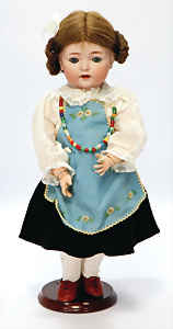 gem. 16 Germany (KESTNER), 74 cm, braune Schlafaugen, off. Mund oben Zähne, Gliederkörper, alte Echthaar-Perücke