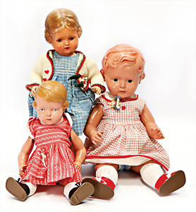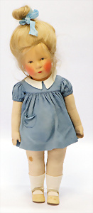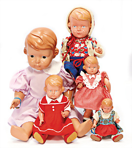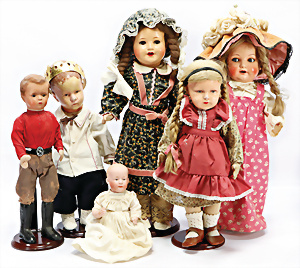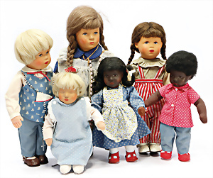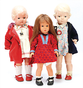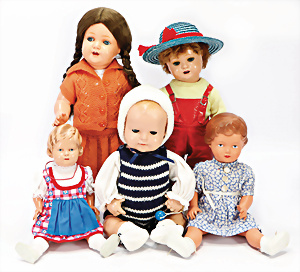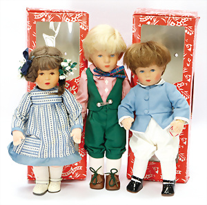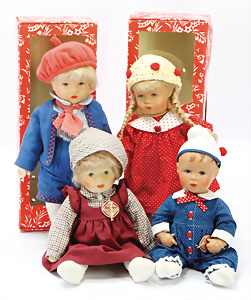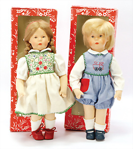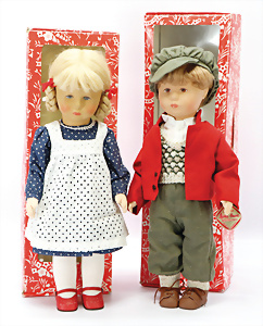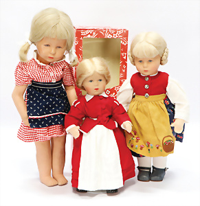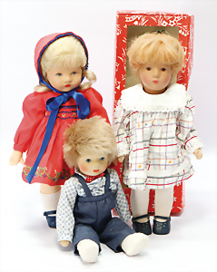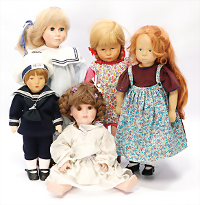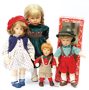 Konv. KÄTHE KRUSE, neuere Produktion, Mädchen, 45 cm, 1 Puppe, weich gestopft, 40 cm, 2 Mädchen, 48 cm, 1 Junge, 52 cm, 1 Puppe HEIDI OTT