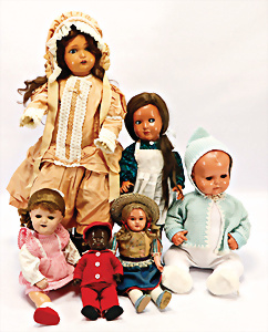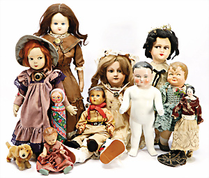 Puppen, Fundkiste, Masse-Puppe seitl. blickender Kopf, Masse-Puppe, Junge, K&W, Stoffpuppe, seitl. blickende Augen, Einbindekopf, Indianer, Masse, blaue Schelmenaugen, Masse-Puppe, SFBJ, franz. Gliederkörper, bespielt, 60 cm, kl. Biedermeier-Puppe, glasierter Brustblattkopf, Hände fehlen, Masse-Puppe, seitl. blickende gemalte Augen, Papiermaché-Kopf, Wachs überzogen, Stoffkörper, 1 Badepuppe