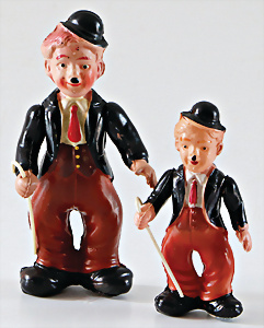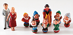 „Schneewittchen und die sieben Zwerge“, Celluloid, Stehauf-Figuren, ungem., 5,5 u. 8,5 cm, guter Zust., 1 Kellner, 1 Mädchen, Celluloid, 9. 10 cm