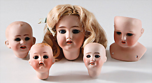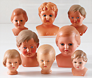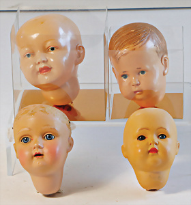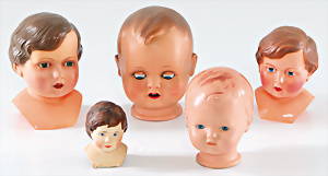 2 Teile Puppenköpfe, Celluloid, Brustblattkopf, Petitcollin, 1x Schildkröt Einbindekopf, Tortulon, 1 Celba Einbindekopf, Tortulon, 1 Brustblattkopf, Masse,