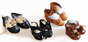 4-tlg., Celluloid-Köpfe, JDK Kestner, Schildkröt Babykopf, Schildkröt Junge, Käfer Symbol, H: 7-8 cm