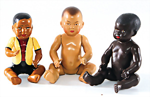 3 Teile Celluloid, 1x SNF, farbiger Junge mit aufgemalter Kleidung, 17 cm, Petit Collin, Asiaten-Baby, 19 cm, Petit Collin, farbiges Baby, 19 cm, guter Zust.