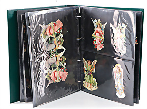 Album, Weihnachtskalender, Käthe Kruse, Engels-Szene, Weihnachts-Oblatenbilder, 1 Hänschen, 1 Weihnachtsgeschichte von E. Schmidt, schöne Oblatenbilder, Weihnachtsmann zu Pferd mit Geschenken, 37 Seiten in Schutzhülle