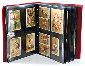 Konv. Sammelbilder, Liebiegs Schocolat Lausaune, Lepage Planus Lions u.a. 71 Seiten in Klarsichthülle, 1880-1910, Chromo-Lithographie