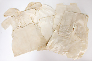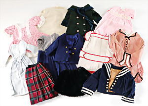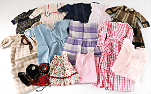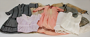 Konv. Puppen-Kleidung, untersch. Alter, für ca. 30 - 40 cm Puppe, Kleider, Unterkleider, 1 Spitzenjäckchen, bitte besichtigen