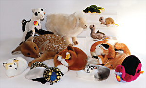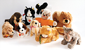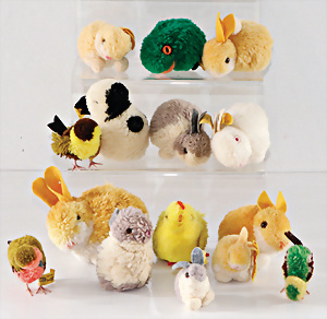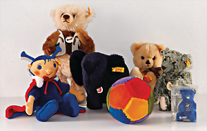 Konv. 11 Teile, Tiere, 60er, 70er, 80er-Jahre, dazu 1 Ball, meist guter Zust., teils mit Knopf