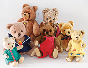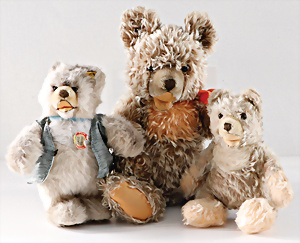 2 Bären, 1 Herrmann Zotty, 1 Schuco Bär, 3 Bären Hersteller?, älter u. neuer, bespielt bis guter Zust.