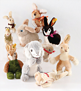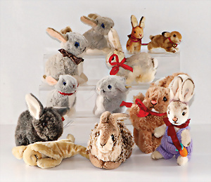 Konv. Hasen, 10 Teile, 70er, 80er, 90er-Jahre, teils mit Knopf, teils mit Knopf u. Fahne, guter Zust,