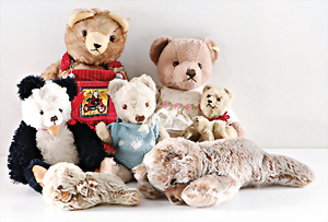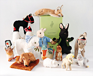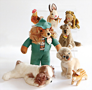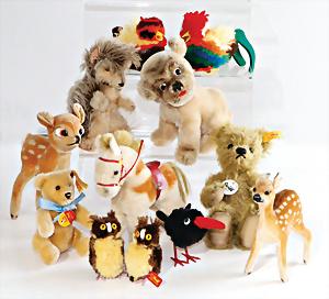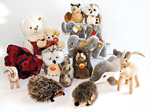 Konv. meist 60er u. 70er -Jahre, Hund, Bambi, Rehkitz, Igel, Pony, 5 Wollminiaturen, älter u. neuer, bespielt bis gut, meist ohne Knopf u. Schild, 2 kl. Bären neuere Produktion, kompl.
