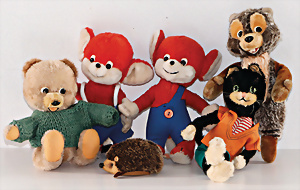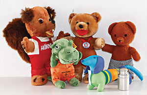 Konv. Werbefiguren, Hörni, Fuchs, kompl., Nr. 7832-32, 2 Bärenmarke Bären, 1 Krokodil Malteser, 1 Olympia Dackel, 2 Bären Filz-Pfoten beschädigt, sonst guter Zust.