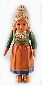 Holländerin, gem. SoR, 14 cm, anmodell. Kleidung, anmodell. Haube, feste Beine, bewegl. Arme, guter Zust.