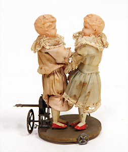 Tanzende Puppen, 16,5 cm, früh, Orig.-Zust., Holzabplatzer an einem Fuß, Uhrwerk intakt
