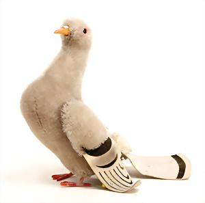 Taube, 50er Jahre, mit Knopf und Fahne Nr. 2565/25, 25 cm, etwas Farbverlust an den Füßen