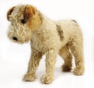 3 Teile, Minki Zotty, Schild liegt verschlissen, lose bei, mit Knopf u. Fahne, Nr. schwach erkennbar, 2x Zotty, 42 u. 30 cm, bespielt bis guter Zust.