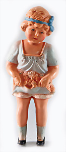 Celluloid, Ruth, gem. SiR, 11,5 cm, anmodell. Haarband, anmodell. Kleidung mit Blumenrock, guter Zust.