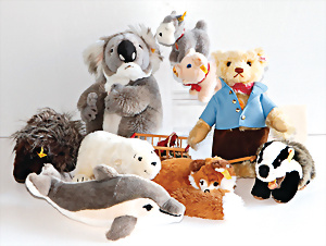 Konv. neuere Produktion, Koala, Eisbär, Piky, Diggy, Hund, Schwein, Fuchs, Delphin, dazu 1 Replica mit Zertifikat, „Deutschland Edition 2002“, Bär mit Wagen ohne Kart., meist guter bis sehr guter Zust.