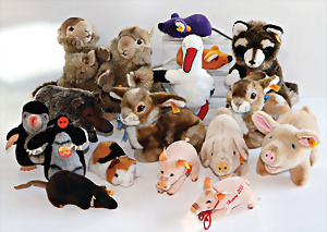 Konv., neuere Produktion, 17-tlg., Schweine, Waschbär, Molly, Hasen, Maulwurf, Meerschweinchen, Maus, Ratte, teils kompl., meist sehr guter Zust.