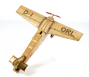 Propellerflugzeug, 20er Jahre, D-I ORL, Blech lithogr., 35 cm, Uhrwerk intakt, guter Zust., leicht bespielt
