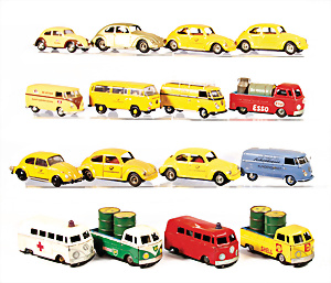 Konv. 17-tlg., Modell-Autos, M: 1:43, u.a., PKW u. Nutzfahrzeug, bespielt - guter Zust., teilw. Lackfehler