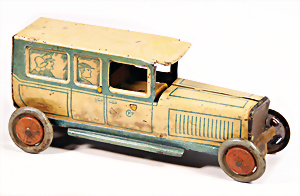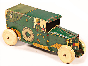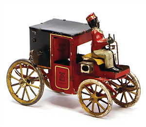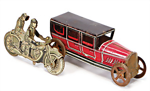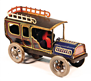Motorkutsche, Blech, lithogr., bespielt, bis auf kl. Stellen gut, Spiralfederwerk intakt