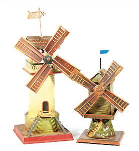 2 Antriebsmodelle, 1x Windmühle, 25,5 cm, bespielt - gut, 1x Windmühle, 18 cm, bespielt, kl. Stellen ausgebessert, gut