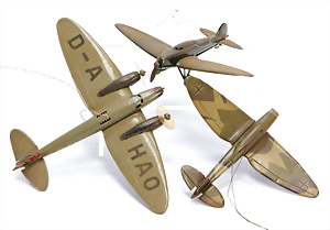 3 Teile, Flugzeuge, D-A HAO, 1 Hoheitszeichen weggekratzt, 2 Jagdflieger, bespielt - gut