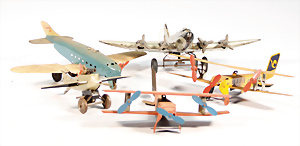 Konv. Flugzeuge, neuere Produktion, Blech, Holz, Pappe, Guss, versch. Hersteller, dazu 1 Flugzeug Made in Japan, KLM Royal Dutch Airlines, Blech- u. Kunststoffteile, 1 Zeppelin, PAYA, neuer, 1 Wasserflugzeug