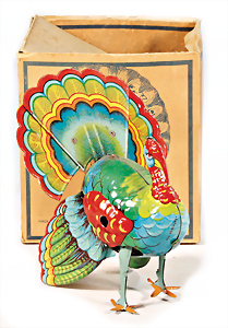 Pfau, Blech, lithogr., 14,5 cm, Uhrwerk intakt, sehr guter Zust., im Orig.-Kart.