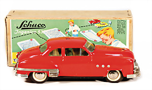 21 cm, Blech, Uhrwerk intakt, bespielt, Stoff am Verdeck etwas verschlissen, Windschutzscheibe defekt, sonst guter Zust.