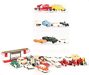 Konv. Modellautos, SIKU, Plastik, ca. 20 Teile, bespielt, teils. kl. Beschädigungen, darunter Porsche Speedster, Porsche 356 Polizei, 300 SL, bitte besichtigen, dazu einige Verkehrsschilder, teils kl. Beschädigungen, teils guter Zust.