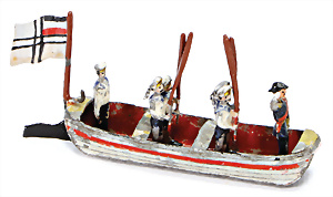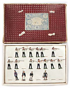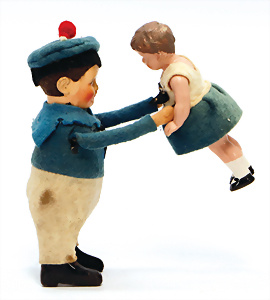 Zinn, plastische Figuren, 5 cm, Matrosen, meist kämpfend, 13 Teile, dazu 4 Matrosen, teils Lackfehler, im Kart.