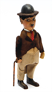Charlie Chaplin, 16,5 cm, orig. Filz-Kleidung, altersbed. etwas verschlissen, Uhrwerk intakt