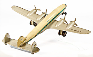 Flugzeug, 4-motorige Propellermaschine, D-ALAK, Lufthansa, Blech, Batterieantrieb, Made in Western Germany, 40 cm, bespielt, gut