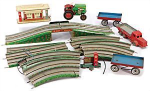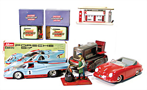 Konv. Blechspielzeug, DISTLER Porsche, Replica, 1 Tankstelle, Blech, DISTLER Generator-Motor, 1x kompl., 1x Teile, 1 Antriebsmodell, BING, Mann am Amboss, 1 SCHUCO Porsche, 917, Weltmeister 1970, Kunststoff, ohne Antrieb, optisch gut, im Orig.-Kart., 1 Traktor ohne Bodenplatte, Blech, elektro. Antrieb