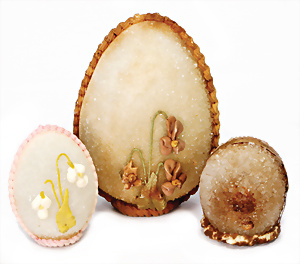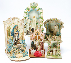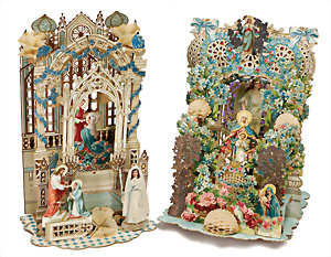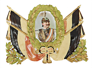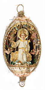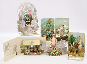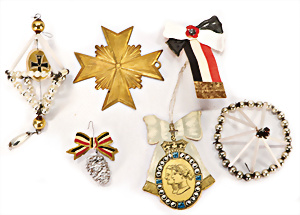 Parian-Brustblattkopf-Puppe, Hanne, ca. 1870, Deutschland, wohl Firma Dornheim, Koch und Fischer, Parian-Brustblattkopf mit anmodell., weißen, reich verziertem Spitzenblusenteil mit rundem Spitzenkragen, Rückteil breiter, schmales Gesicht, kl. rot bemalter Schmollmund, lange, schmale Nase, hohe Stirn, kühle Ausstrahlung, ausmodell. Ohren, durchst., blonde, stark ausmodell. Haare mit rosa Rose, umringt mit grünen Blättern in der Mitte der Frisur, auf der