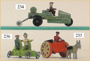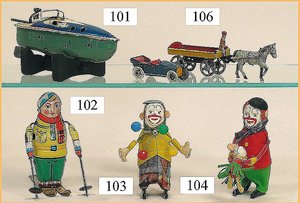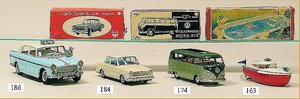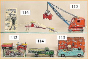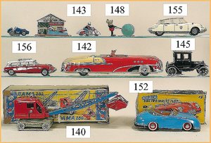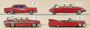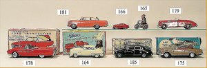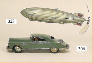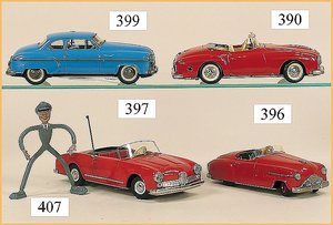 Commander, amerik. Cabriolet, Made in Western Germany, Blech lithogr., Friktionsantrieb, Frontscheibe u. Lenkrad fehlen, mit Masse-Fahrerfigur, am Kofferraumdeckel eingedrückt, sonst gut