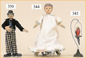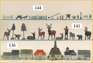 Konv. Massefiguren, 2x LINEOL, Förster u. Knecht, 9 cm, 1 Gänsemagd, ungemarkt, 11 Teile Federvieh, 1 Porzellan-Reh, sowie Jesuskind in Krippe, Zust. 2 (n. a. T. f.)
