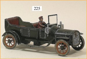 CARETTE Auto, ca. 1910, 27,5 cm, Blech handlackiert, gummibereift, 2 Frontscheinwerfer, 2 Laternen, Uhrwerk intakt, Orig.-Masse-Fahrerfigur, guter - sehr guter Zust., mit nur minim. Lackfehlern