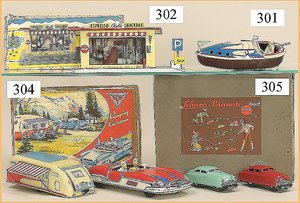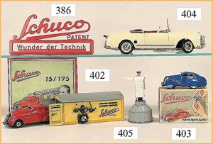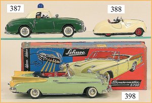 SCHUCO Synchromatic 5700, Packard, 27 cm, Blech, Batterieantrieb, kl. Spielspuren am Boden, sonst guter - sehr guter Zust., im Orig.-Kart., mit Anleitung u. ein paar Zubehörteilen