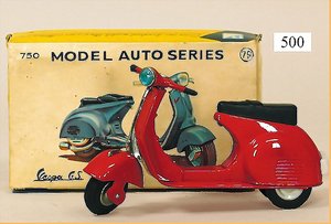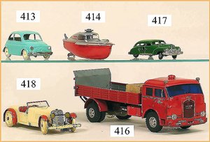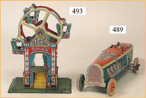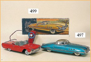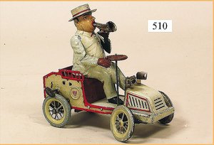DISTLER Coupé, grün, 38 cm, Uhrwerkantrieb, elektr. beleuchtete Frontscheinwerfer, mit Fahrerfigur, Koffer hinten zum Öffnen, gummibereift, sehr guter Zust.