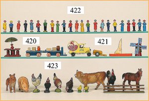 14 Teile Massefiguren, meist ELASTOLIN, Bauernhof, Federvieh, Schwein, Kuh, Hund, 3 Zaunteile, Kuh u. Schwein, 1 Fuß weggebrochen, sonst Zust. 1 - 2 (n. a. T. f.)