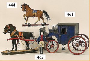ERZGEBIRGE sehr schön gearbeitete Kutsche, 70 cm, Zugpferd mit innen liegenden Blechrädern, Kutsche Holz, handlackiert, Speichenräder, schön gearbeitet