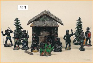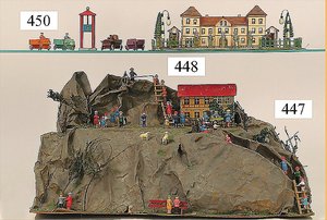 Tunnel, Uralt, Blech, 52 cm breit, 28 cm tief, Durchgangshöhe 20 cm, mit Weg, 2 Burgruinen, 2 Häuser, sowie Aussichtspunkt, bespielt, ein wenig Flugrost