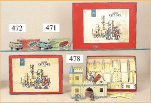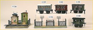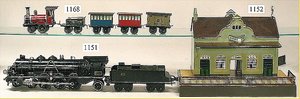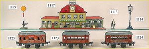 MÄRKLIN Bahnhof, 20er Jahre, selten, Grundplatte 35 cm auf 19 cm, mit Treppe, 1 Seitenwange an der Treppe gelötet, sonst sehr schöner Orig.-Zust., altes MÄRKLIN-Zeichen