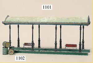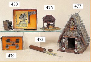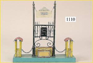 BING Bahnhof, mit Mauerprägung, 1909 - 1915, seitlich Bahnhofsüberdachung mit Bank, Grundplatte 36 x 21,5 cm, Schild oben fehlt, sonst sehr schöner Orig.-Zust., mit nur minim, Lackfehlern, schöne kräftige Farben