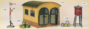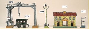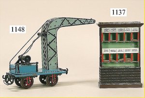 MÄRKLIN Spur 2, seltener Güterschuppen, Uralt, vorn u. seitlich Treppenaufgang, Verladerampe, 2 Verladekräne, sehr schöner Orig.-Zust., mit nur minim. Lackfehlern, sehr schöne leuchtende Farben, selten