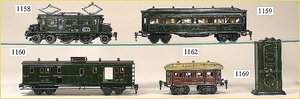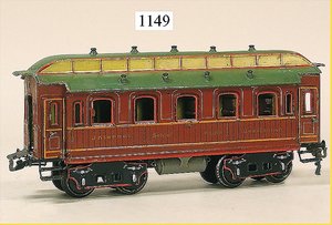 MÄRKLIN Spur 0, 1841, Personenwagen, 29,5 cm, grün, 1. u. 2. Klasse, mit Inneneinrichtung, sowie einigen Figuren, Schilder fehlen, sehr guter Zust., im Kart. ohne Aufdruck