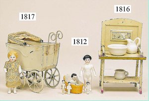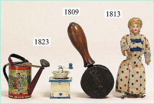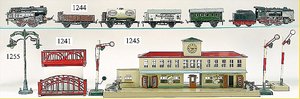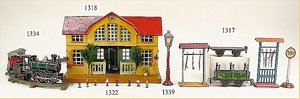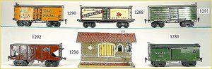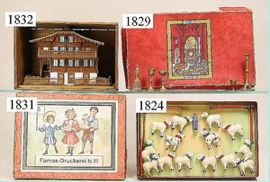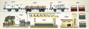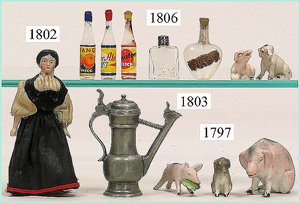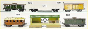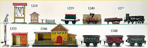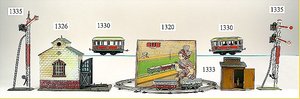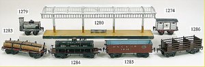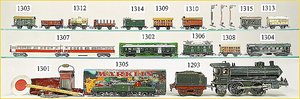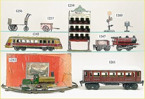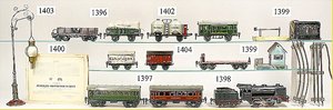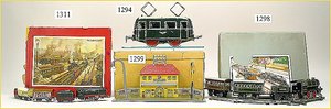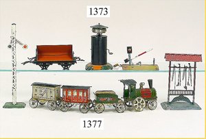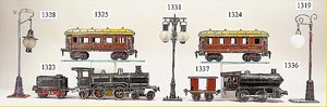 Zupackung, bestehend aus R800, Achsfolge B, schwarz, Aufschrift R800, Schlepptenderlok B, Zinkpest an den Rädern, 1 Rad fehlt, soweit keine Risse erkennbar, technisch nicht geprüft, dazu 398 Gambrinus Bierwagen, silberne Bügelkupplung, starke Lackfehler am Dach, gedeckter Güterwagen, 381, leicht bespielt, guter Zust., sowie 365 off. Güterwagen, silberne Klauenkupplung, Aufschrift am Kart. R827, Rand seitlich am Kart. fehlt