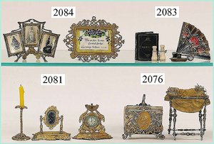 2 Bilderrahmen, Messingblech vergoldet, 8,5 cm, davon 1 Rahmen stark angelaufen, 1 Bilderrahmen mit Bild 8 cm, Wandhalter, Messingblech vergoldet, Zinnarm, mit Lampe, Lampenglas fehlt, 1 Wandarm Zinn, 1 kl. Zinnleuchter (n. a. T. f.)